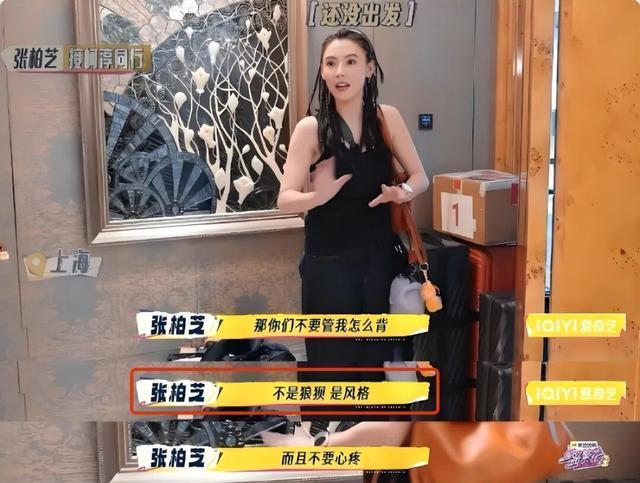 拖着四个行李箱还坚持自己拿,嘴里还笑着说:“不用帮我,这不是狼狈,这是风格。”