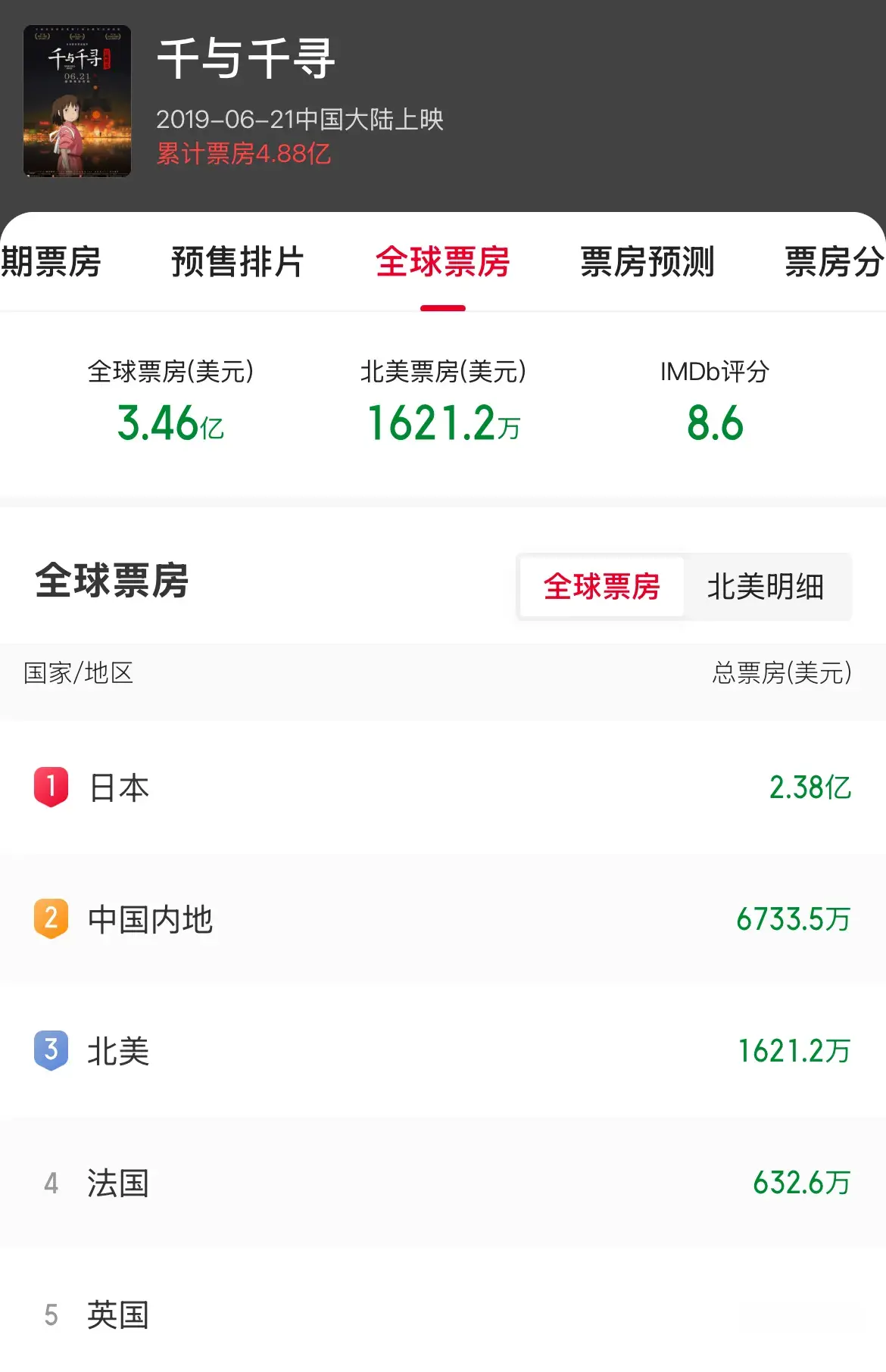 有意思的是,这片子在日本本土虽然也卖了2.36亿美元,但只排在影史第三。