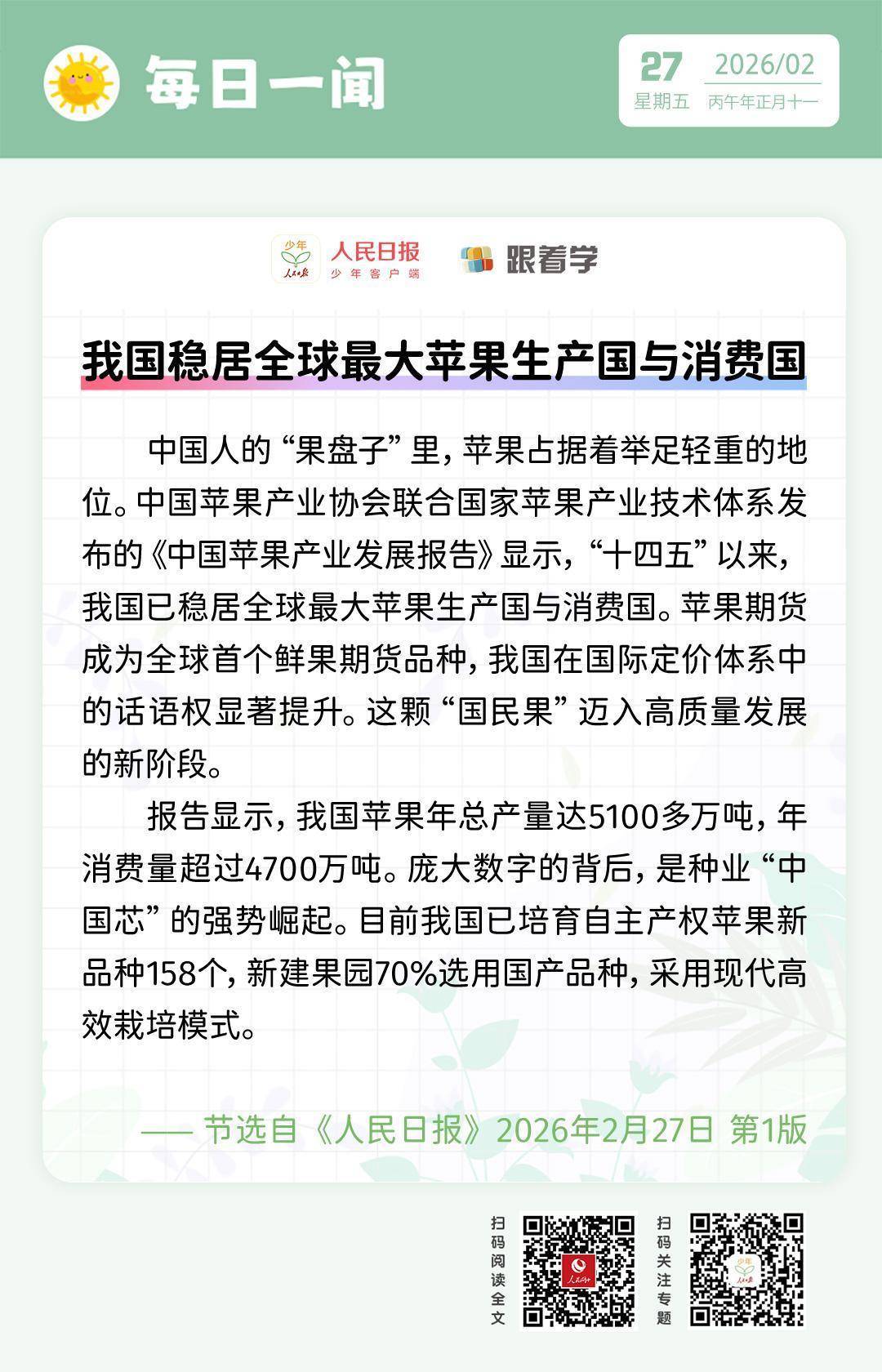 红启网配资 每日一闻丨我国稳居全球最大苹果生产国与消费国